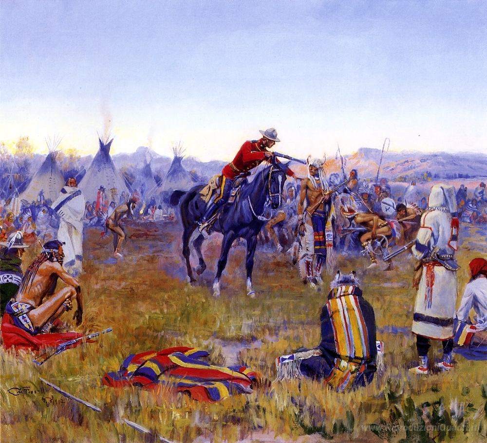 Ti offriamo una riproduzione artigianale su tela dell'opera famosa 'Singolo Handed' di Charles M. Russell, dal Museo delle Riproduzioni.