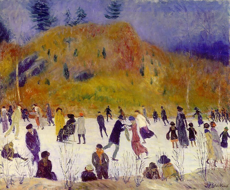 Ti offriamo una riproduzione artigianale su tela dell'opera famosa 'Skating in Central Park' di William James Glackens, dal Museo delle Riproduzioni.