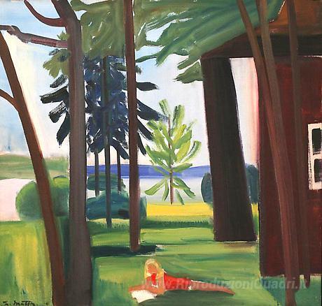 Ti offriamo una riproduzione artigianale su tela dell'opera famosa 'Skowhegan Paesaggio' di Louisa Matthiasdottir, dal Museo delle Riproduzioni.