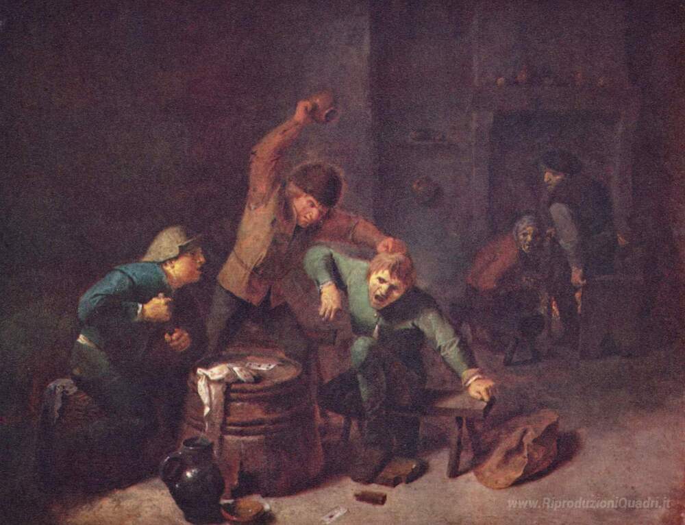 Ti offriamo una riproduzione artigianale su tela dell'opera famosa 'Smallholders Playing Cards' di Adriaen Brouwer, dal Museo delle Riproduzioni.
