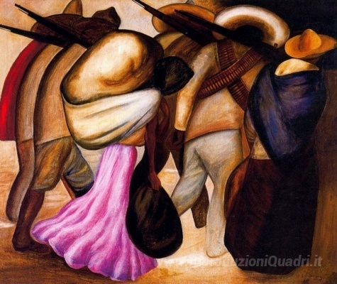 Ti offriamo una riproduzione artigianale su tela dell'opera famosa 'Soldati' di Jose Clemente Orozco, dal Museo delle Riproduzioni.