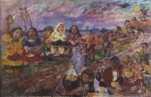 Ti offriamo una riproduzione artigianale su tela dell'opera famosa 'Song of Harvest' di David Burliuk, dal Museo delle Riproduzioni.