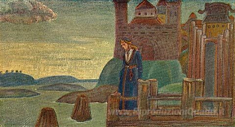 Ti offriamo una riproduzione artigianale su tela dell'opera famosa 'Song of Viking' di Nicholas Roerich, dal Museo delle Riproduzioni.