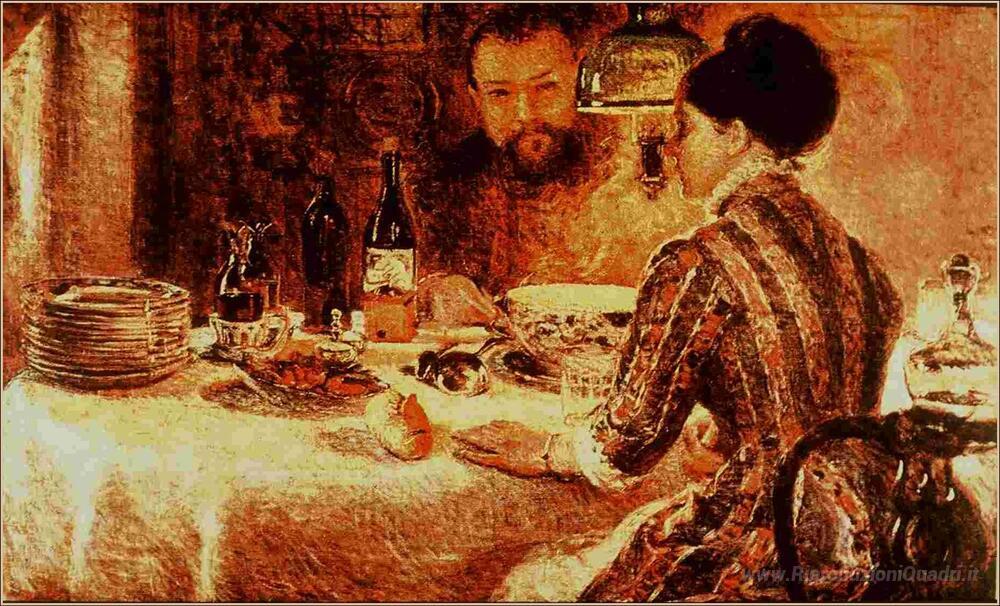 Ti offriamo una riproduzione artigianale su tela dell'opera famosa 'Sotto la lampada' di Marie Bracquemond, dal Museo delle Riproduzioni.