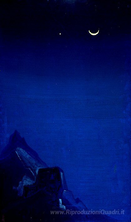 Ti offriamo una riproduzione artigianale su tela dell'opera famosa 'Spell. Nuova luna.' di Nicholas Roerich, dal Museo delle Riproduzioni.