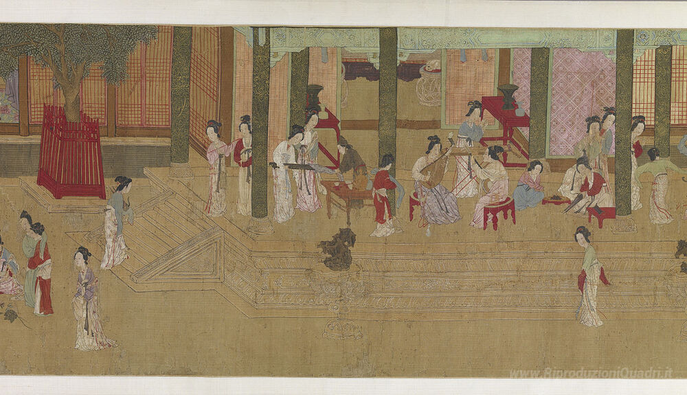 Ti offriamo una riproduzione artigianale su tela dell'opera famosa 'Spring Morning nel Palazzo Han (Vedi F)' di Qiu Ying, dal Museo delle Riproduzioni.