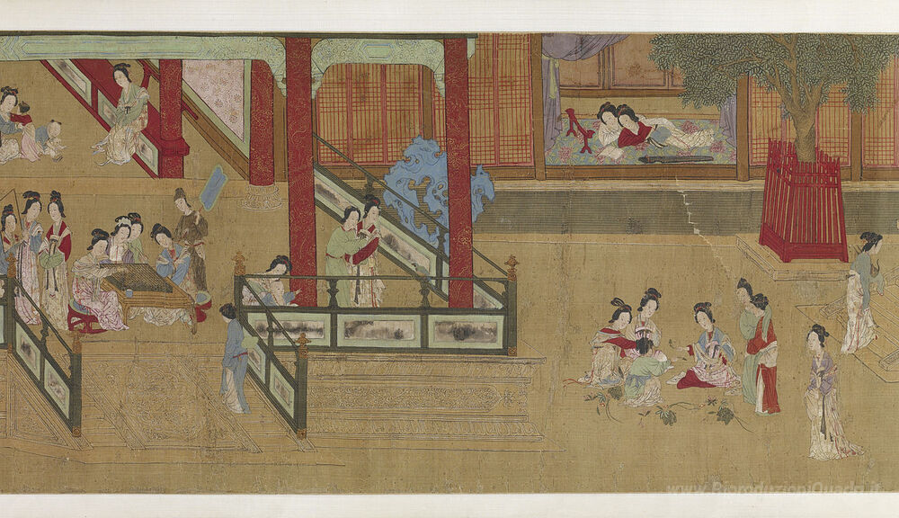 Ti offriamo una riproduzione artigianale su tela dell'opera famosa 'Spring Morning nel Palazzo Han (Visualizza G)' di Qiu Ying, dal Museo delle Riproduzioni.