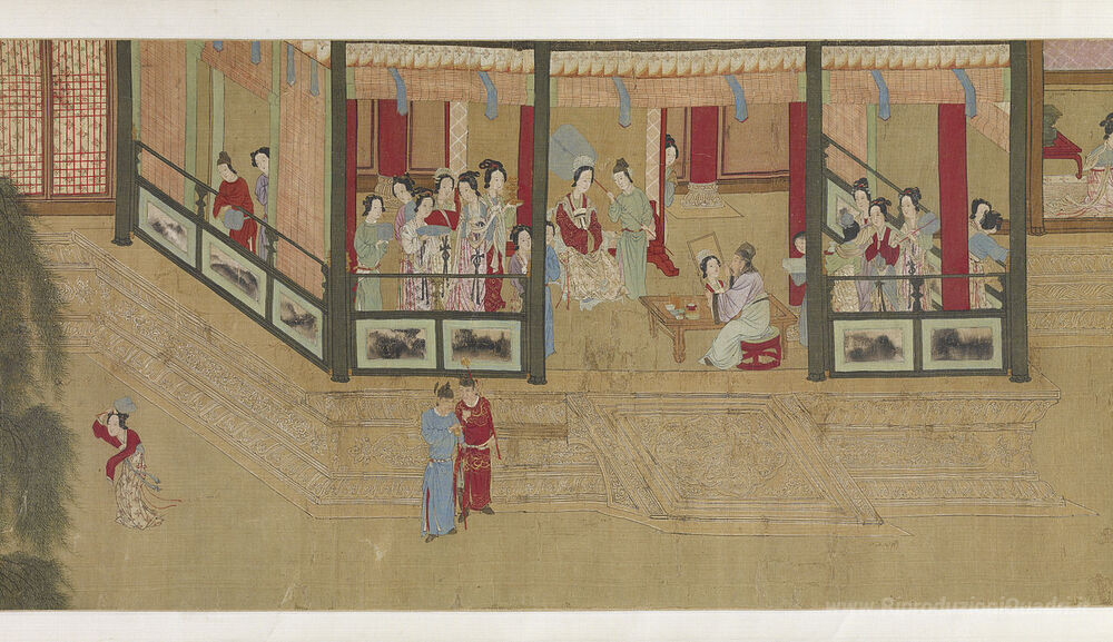 Ti offriamo una riproduzione artigianale su tela dell'opera famosa 'Spring Morning nel Palazzo Han (Visualizza I)' di Qiu Ying, dal Museo delle Riproduzioni.