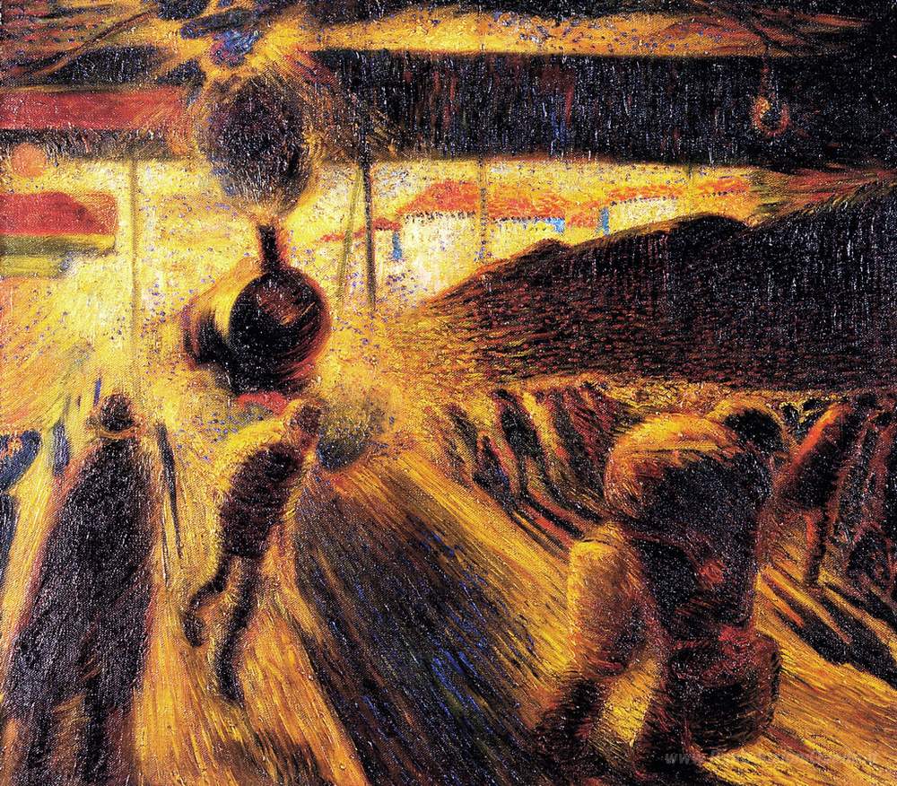 Ti offriamo una riproduzione artigianale su tela dell'opera famosa 'Stazione a Milano' di Carlo Carra, dal Museo delle Riproduzioni.