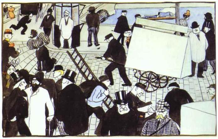 Ti offriamo una riproduzione artigianale su tela dell'opera famosa 'Street Scene' di Felix Vallotton , dal Museo delle Riproduzioni.