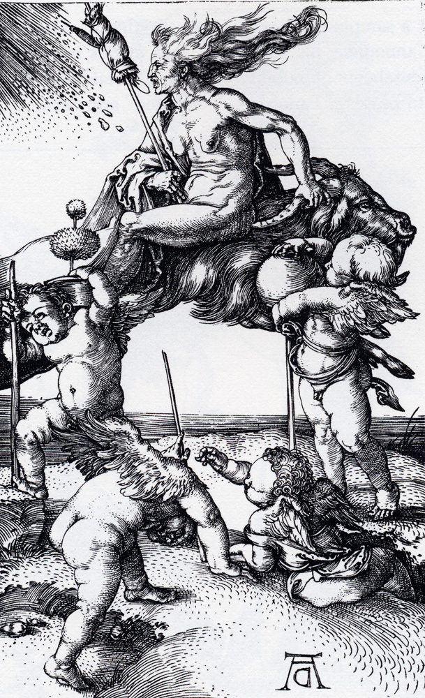 Ti offriamo una riproduzione artigianale su tela dell'opera famosa 'Strega equitazione indietro su una capra' di Albrecht Durer, dal Museo delle Riproduzioni.