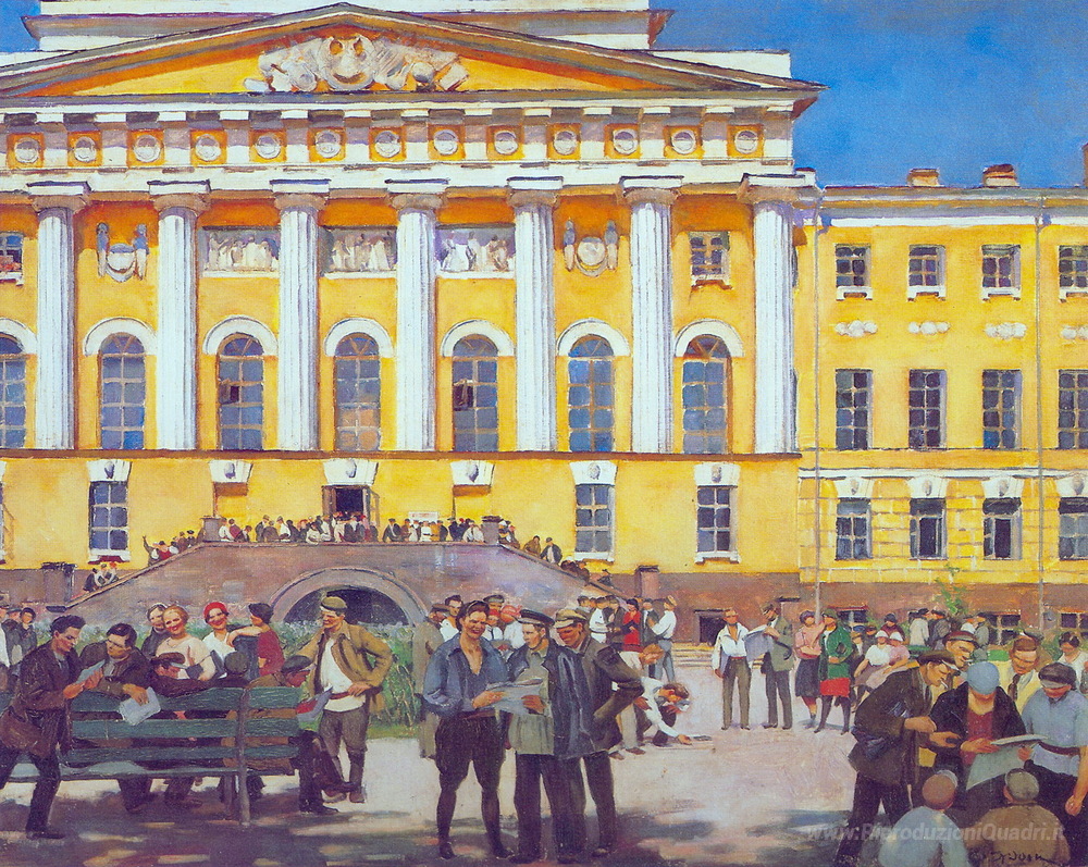 Ti offriamo una riproduzione artigianale su tela dell'opera famosa 'Studenti' di Konstantin Yuon, dal Museo delle Riproduzioni.