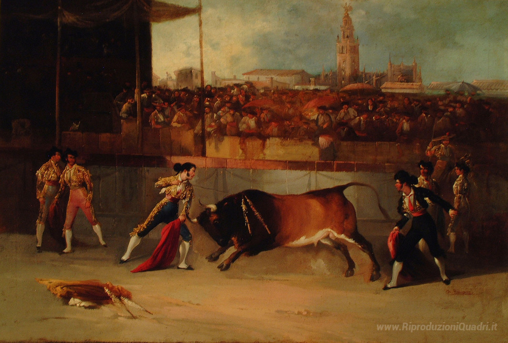 Ti offriamo una riproduzione artigianale su tela dell'opera famosa 'Suerte de recibir' di Manuel Rodriguez de Guzman, dal Museo delle Riproduzioni.