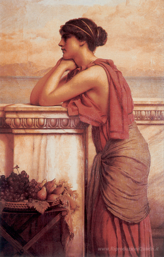Ti offriamo una riproduzione artigianale su tela dell'opera famosa 'Sul ciglio della strada' di John William Godward, dal Museo delle Riproduzioni.