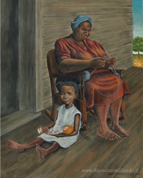 Benvenuti nel nostro angolo dedicato all'arte italiana, dove ogni dipinto a olio racconta una storia unica e affascinante. Oggi vi presentiamo Sul Portico, un'opera del maestro John Steuart Curry, un artista americano noto per la sua capacità di catturare la bellezza della vita quotidiana attraverso colori vibranti e una tecnica impeccabile. Curry, con il suo stile distintivo che unisce realismo e impressionismo, riesce a trasmettere emozioni profonde, facendo di ogni sua opera una vera esperienza visiva.
