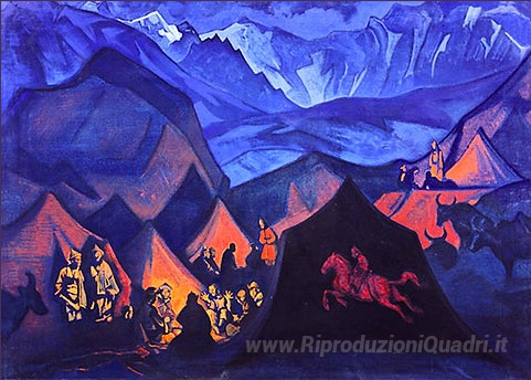 Ti offriamo una riproduzione artigianale su tela dell'opera famosa 'Sussurri di Deserto (Storia di New Era)' di Nicholas Roerich, dal Museo delle Riproduzioni.