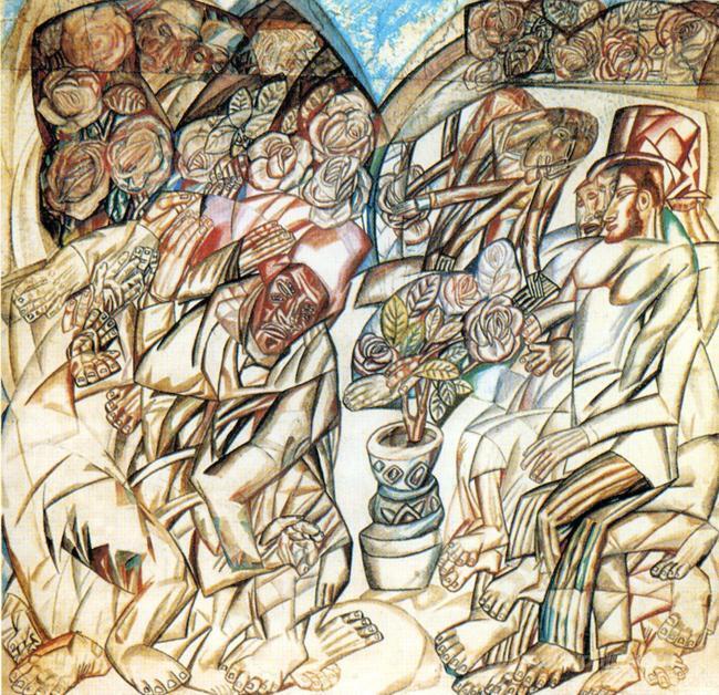 Ti offriamo una riproduzione artigianale su tela dell'opera famosa 'The Gardener' di Pavel Filonov, dal Museo delle Riproduzioni.
