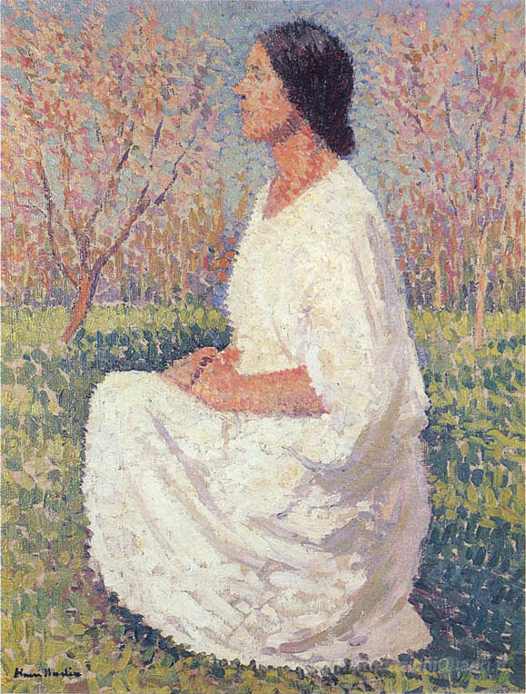 Ti offriamo una riproduzione artigianale su tela dell'opera famosa 'The Muse' di Henri Martin, dal Museo delle Riproduzioni.
