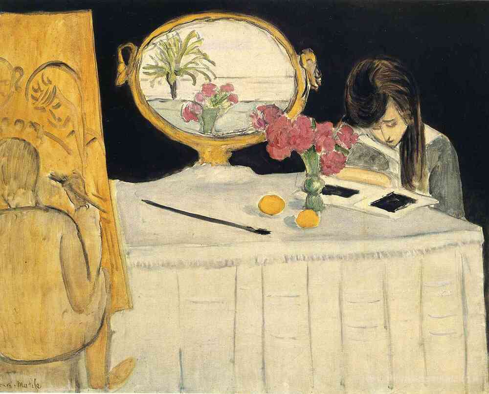 Ti offriamo una riproduzione artigianale su tela dell'opera famosa 'The Painting Lesson' di Henri Matisse, dal Museo delle Riproduzioni.