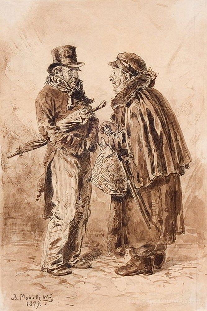 Ti offriamo una riproduzione artigianale su tela dell'opera famosa 'Tipi di Mosca' di Vladimir Makovsky, dal Museo delle Riproduzioni.