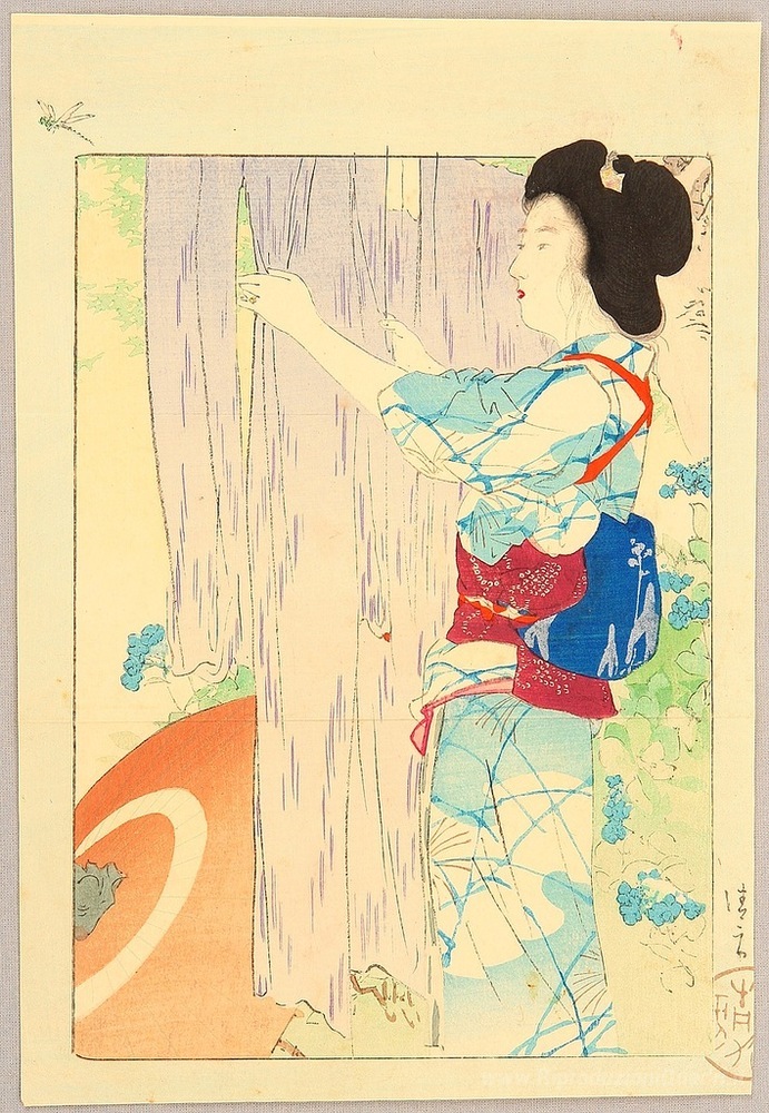 Ti offriamo una riproduzione artigianale su tela dell'opera famosa 'Titolo sconosciuto' di Kiyokata Kaburagi, dal Museo delle Riproduzioni.