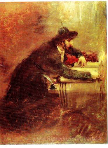 Ti offriamo una riproduzione artigianale su tela dell'opera famosa 'Torah Scribe' di Maurycy Gottlieb, dal Museo delle Riproduzioni.