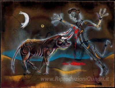 Ti offriamo una riproduzione artigianale su tela dell'opera famosa 'Toros Suite' di Joan Ponc, dal Museo delle Riproduzioni.
