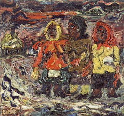 Ti offriamo una riproduzione artigianale su tela dell'opera famosa 'Tre contadini' di David Burliuk, dal Museo delle Riproduzioni.