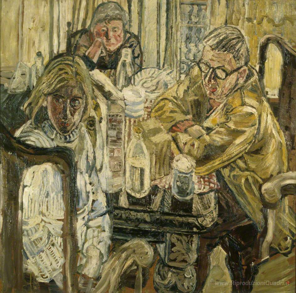 Ti offriamo una riproduzione artigianale su tela dell'opera famosa 'Tre persone in un Tavolo' di John Bratby, dal Museo delle Riproduzioni.