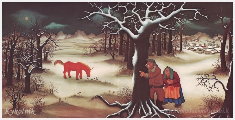 Ti offriamo una riproduzione artigianale su tela dell'opera famosa 'Un cavallo con un corno' di Ivan Generalic, dal Museo delle Riproduzioni.