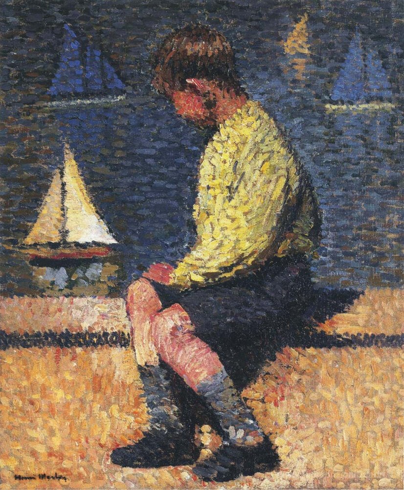 Ti offriamo una riproduzione artigianale su tela dell'opera famosa 'Un ragazzo con barche a vela' di Henri Martin, dal Museo delle Riproduzioni.