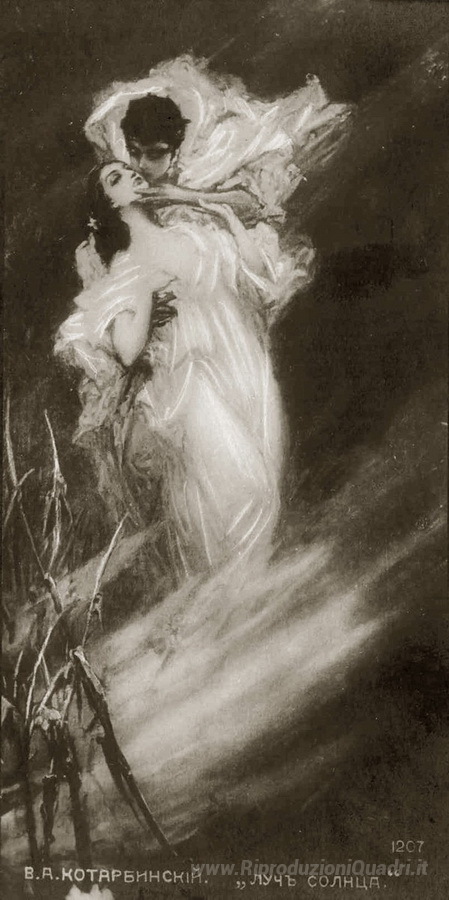 Ti offriamo una riproduzione artigianale su tela dell'opera famosa 'Un raggio di sole' di Wilhelm Kotarbinski, dal Museo delle Riproduzioni.