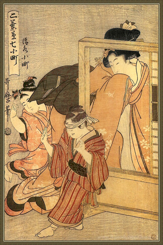 Lo stile di Utamaro, rinomato per le sue raffinate rappresentazioni femminili, si riflette in questo lavoro, dove l'uso sapiente dell'olio esalta i colori vividi e le texture morbide. Le tecniche artistiche impiegate, tra cui il chiaroscuro e la composizione armoniosa, creano un'atmosfera calda e accogliente, perfetta per arricchire qualsiasi ambiente domestico. Nelle tue stanze, "Una Donna Orologi due figli" non solo decora, ma racconta storie, evocando sentimenti e ricordi in chi lo osserva.