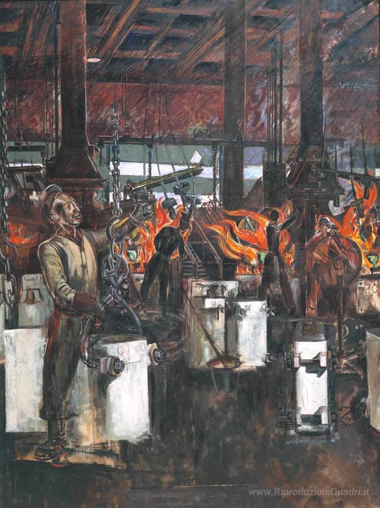 Ti offriamo una riproduzione artigianale su tela dell'opera famosa 'Una Fabbrica Canadian War' di Wyndham Lewis, dal Museo delle Riproduzioni.