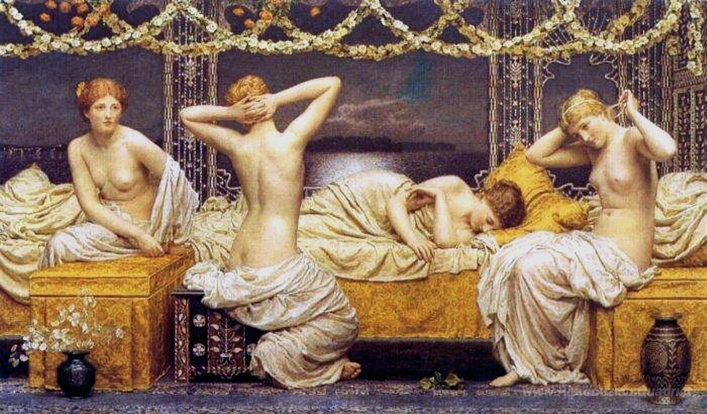 Ti offriamo una riproduzione artigianale su tela dell'opera famosa 'Una notte d'estate' di Albert Joseph Moore, dal Museo delle Riproduzioni.