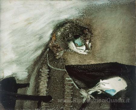 Ti offriamo una riproduzione artigianale su tela dell'opera famosa 'Uomo che legge' di Paul Wunderlich, dal Museo delle Riproduzioni.
