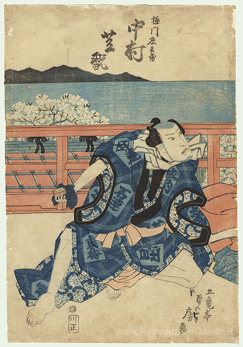 Ti offriamo una riproduzione artigianale su tela dell'opera famosa 'Uomo sorpreso su una veranda' di Utagawa Sadatora, dal Museo delle Riproduzioni.