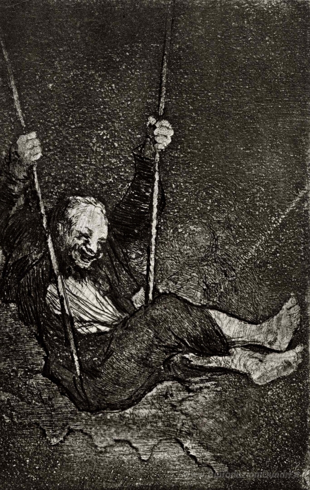 Ti offriamo una riproduzione artigianale su tela dell'opera famosa 'Vecchia oscillazione' di Francisco Goya, dal Museo delle Riproduzioni.