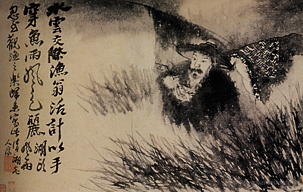 Ti offriamo una riproduzione artigianale su tela dell'opera famosa 'Vecchio acqua in erba' di Shitao, dal Museo delle Riproduzioni.