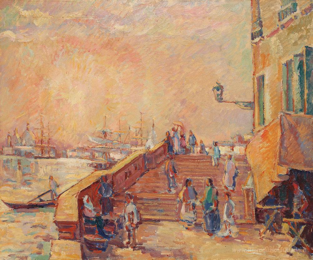 Ti offriamo una riproduzione artigianale su tela dell'opera famosa 'Venezia Cliff Visto da Piazza San Marco' di Nicolae Darascu, dal Museo delle Riproduzioni.
