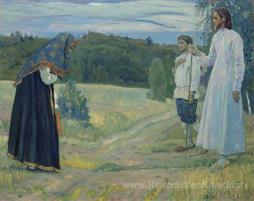 Ti offriamo una riproduzione artigianale su tela dell'opera famosa 'Viandante' di Mikhail Nesterov, dal Museo delle Riproduzioni.