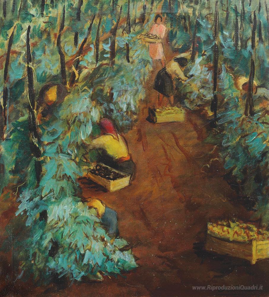 Ti offriamo una riproduzione artigianale su tela dell'opera famosa 'Vineyard Harvest' di Micaela Eleutheriade, dal Museo delle Riproduzioni.