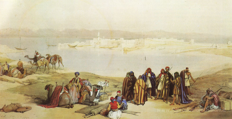 Ti offriamo una riproduzione artigianale su tela dell'opera famosa 'Vista generale di Suez' di David Roberts, dal Museo delle Riproduzioni.