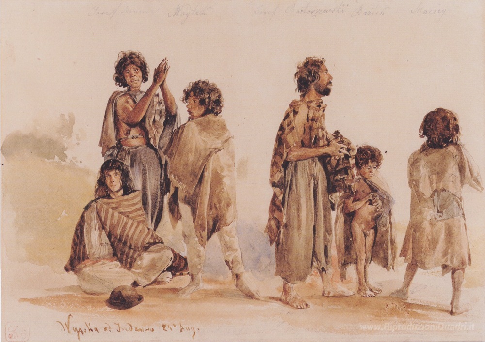 Ti offriamo una riproduzione artigianale su tela dell'opera famosa 'Zingari Galizia' di Rudolf von Alt, dal Museo delle Riproduzioni.