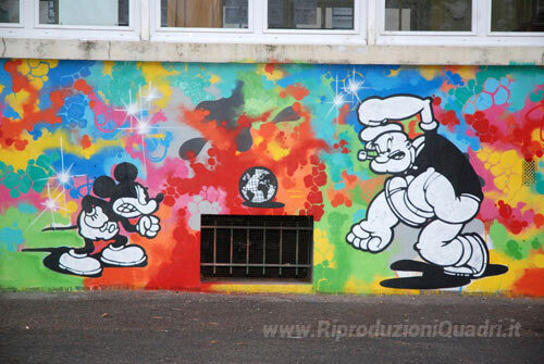 Ti offriamo una riproduzione artigianale su tela dell'opera famosa 'Ecole Romain Rollan - Les Lilas, Francia' di Speedy Graphito, dal Museo delle Riproduzioni.