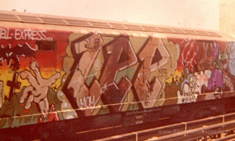 Ti offriamo una riproduzione artigianale su tela dell'opera famosa 'Inferno espresso' di Lee Quinones, dal Museo delle Riproduzioni.