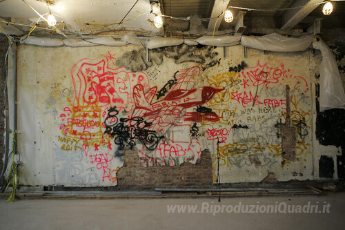 Ti offriamo una riproduzione artigianale su tela dell'opera famosa 'Murale (collaborazione con Futura 2000 e Jean-Michel Basquiat)' di Fab 5 Freddy, dal Museo delle Riproduzioni.