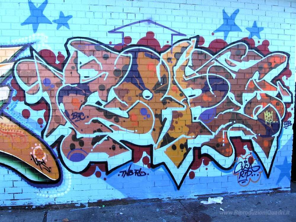 Ti offriamo una riproduzione artigianale su tela dell'opera famosa 'Pezzo' di Cope2, dal Museo delle Riproduzioni.