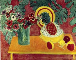 Piatti e frutta su un Red and Black Carpet