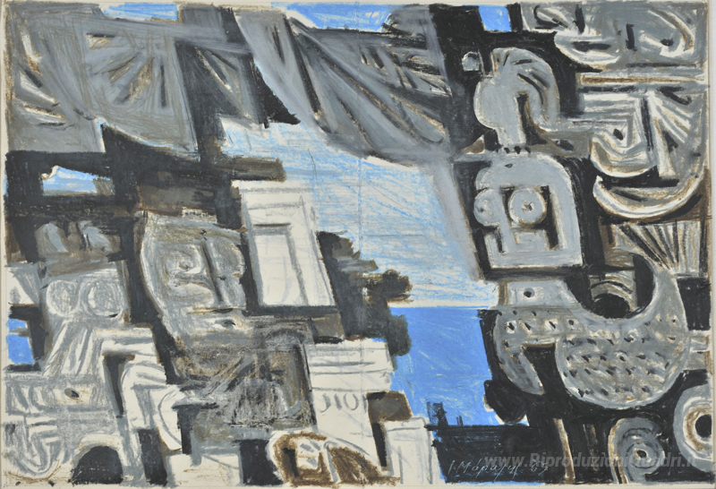 Ti offriamo una riproduzione artigianale su tela dell'opera famosa '10 disegni colorati per le poesie di Giorgos Seferis' di Yiannis Moralis, dal Museo delle Riproduzioni.
